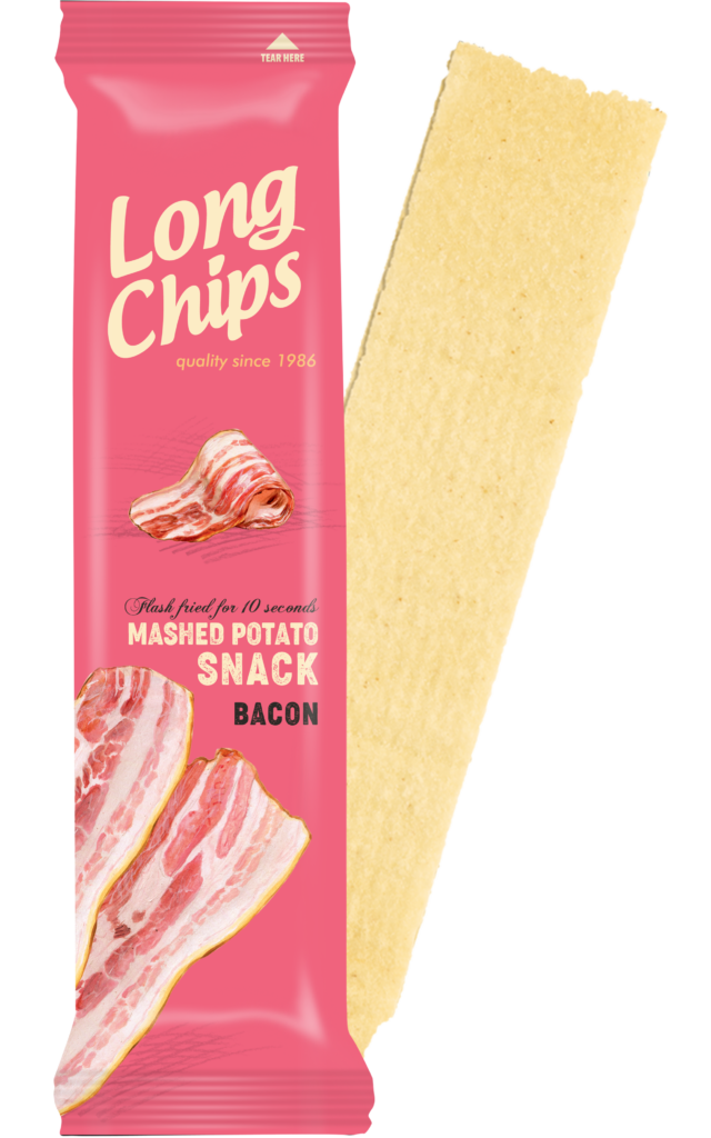 Ingrédients : flocons de pommes de terre (48%), huile de colza, semoule de blé, fécule de pomme de terre, mélange d’épices [sucre, sel, maltodextrine, exhausteur de goût (glutamate monosodique), farine de riz, herbes et épices (ail et oignon en poudre), graisse végétale, arôme (speck, moutarde, arôme de fumée), anti-agglomérant (dioxyde de silicium), sirop de glucose, huile végétale, colorant naturel (extrait de paprika)], sel, antioxydant (extrait de romarin).
